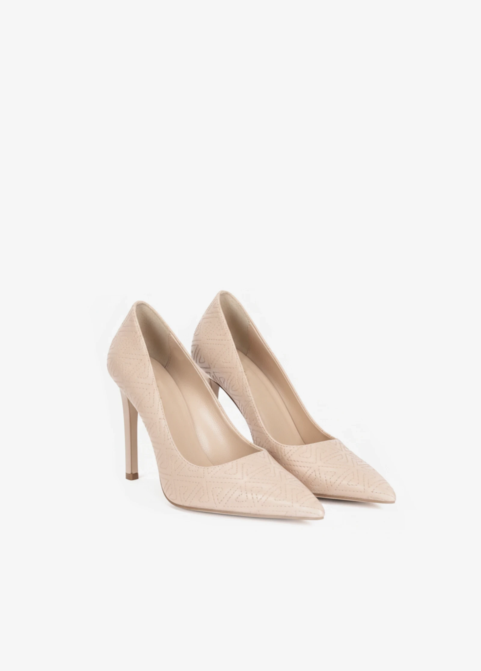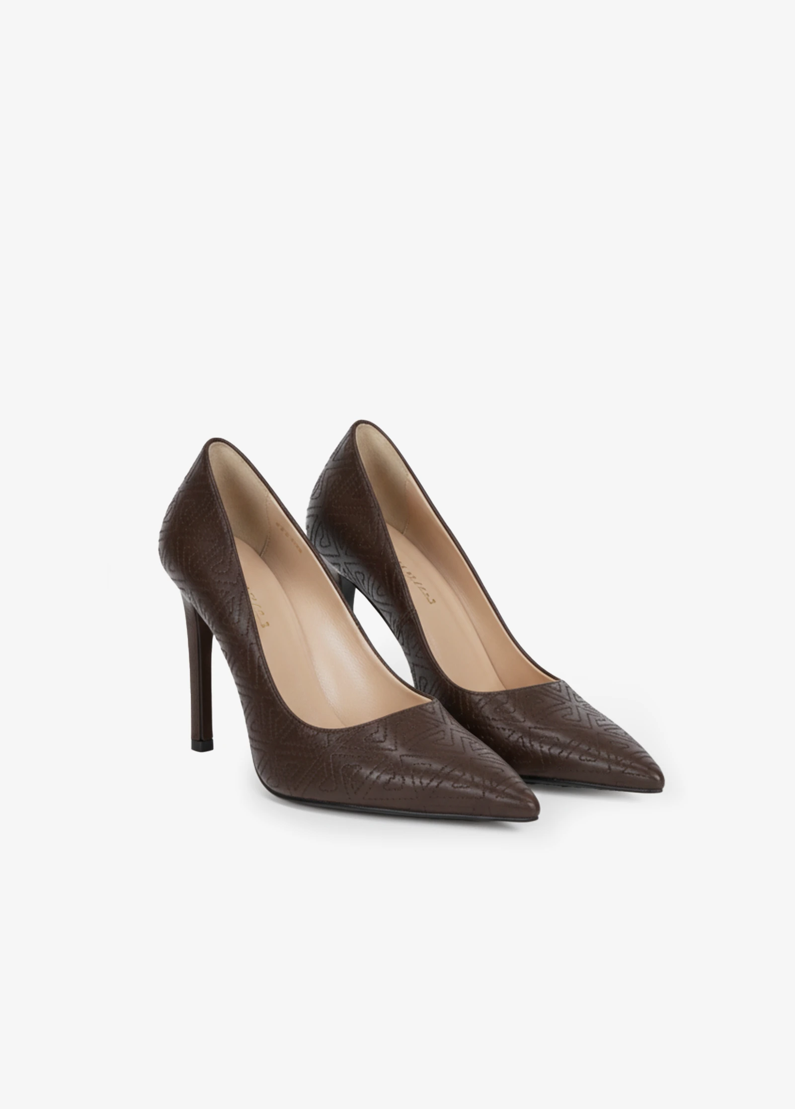 کفش پامپ ابری‌دوزی با پترن، یک گزینه متفاوت بوده که مناسب برای موقعیت‌های رسمی و یا ایونت‌ می‌باشد. قالب کفش استاندارد بوده و با توجه به ارتفاع پاشنه زیاد این کفش مناسب استفاده مداوم و روزمره نمی‌باشد.